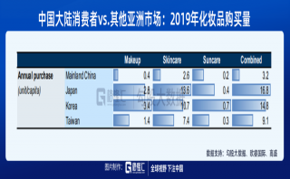 中國化妝品行業(yè)的空間和格局 中國化妝品行業(yè)未來的發(fā)展空間大,增長確定性強(qiáng)。 參考其他亞洲國家的情況可發(fā)現(xiàn),化妝品消費(fèi)水平和GDP之間存在較強(qiáng)的正相關(guān)關(guān)系。2019年中國化妝品支出/實(shí)際GDP為0.3%,而日韓的占比則為0.5~0.6%。 所謂市場發(fā)展?jié)摿Υ螅簿褪翘旎ò甯?,人均化妝品消費(fèi)水平的上升空間大。歐睿國際數(shù)據(jù)顯示,2019年我國消費(fèi)者人均購買3件化妝品。對(duì)比之下,日韓消費(fèi)者人均購買15~1